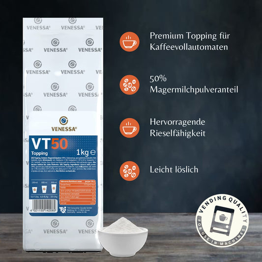 Die VENESSA Toppings und Coffee Creamer verfeinern Kaffeespezialitäten und Heißgetränke ohne zu verklumpen. Sie sind perfekt rieselfähig und optimal zu dosieren. Die feine Milchnote und eine stabile Schaumkrone ermöglichen so Genussmomente, denen keiner widerstehen kann!